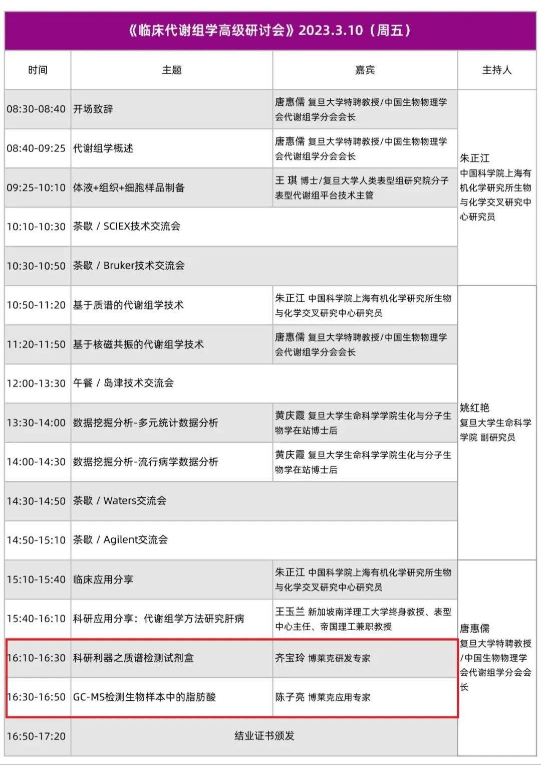 《臨床代謝組學高級研討會》日程
