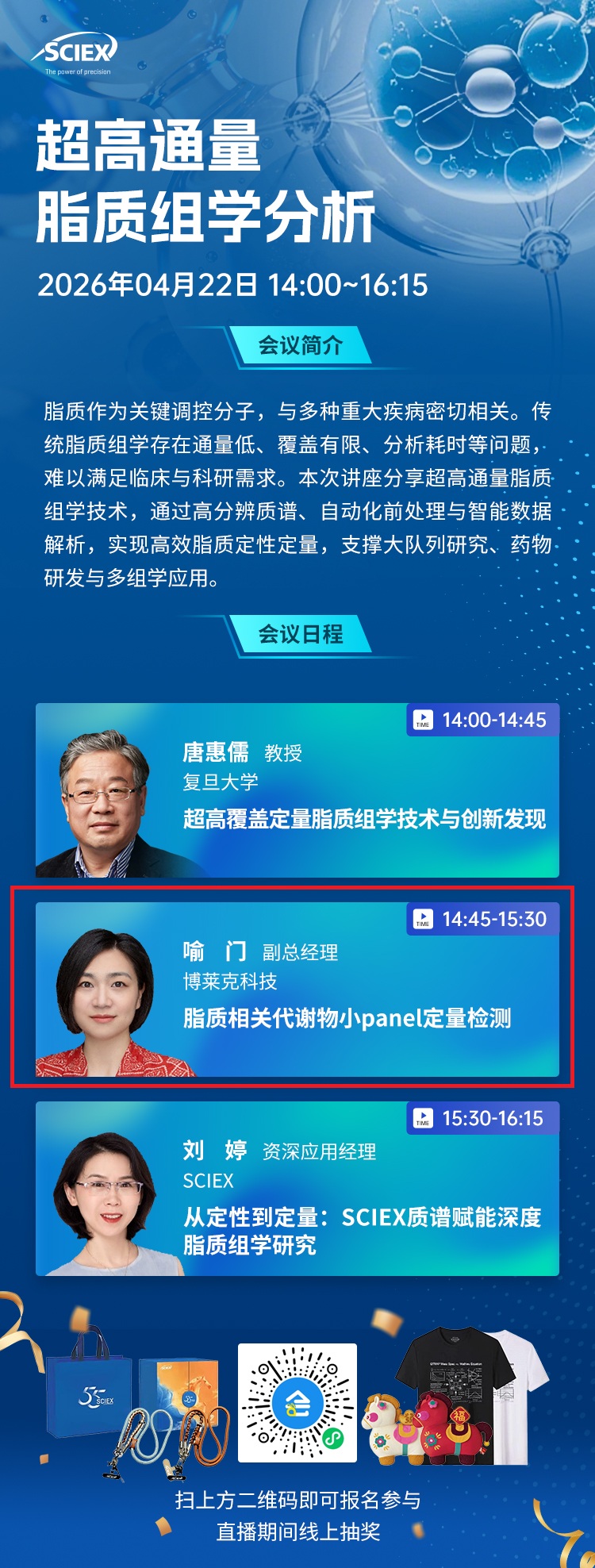 隨著大樣本、多組學研究需求不斷升級,超高通量脂質組學正成為生命科學與臨床醫學研究的重要支撐。值此春意盎然之際,我司受SCIEX 公司邀請將在2026年4月22日線上與大家分享相關知識。屆時誠摯的邀請各位科研同仁相聚線上,共探脂質組學分析技術的前沿進展與應用方向。