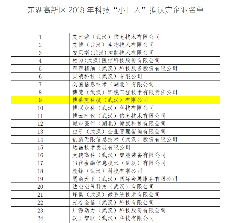 按照《市科技局關于開展科技“小巨人”企業認定工作的通知》(武科〔2018〕33號)有關規定,經企業申報和第三方專家評審,我公司喜獲東湖高新區2018年科技“小巨人”認定。這是繼獲發明專利授權后公司取得的又一可喜成果。