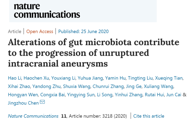 客戶文章 | JNAT COMMUN發(fā)表北京阜外醫(yī)院關于顱內(nèi)動脈瘤的新危險因素