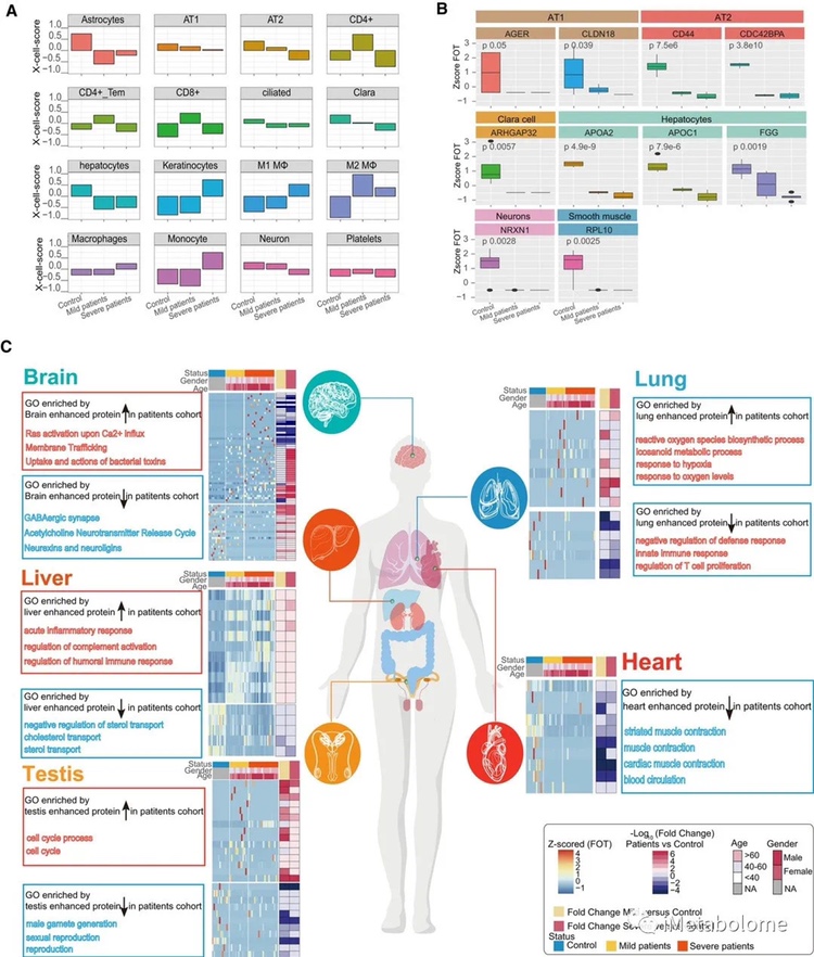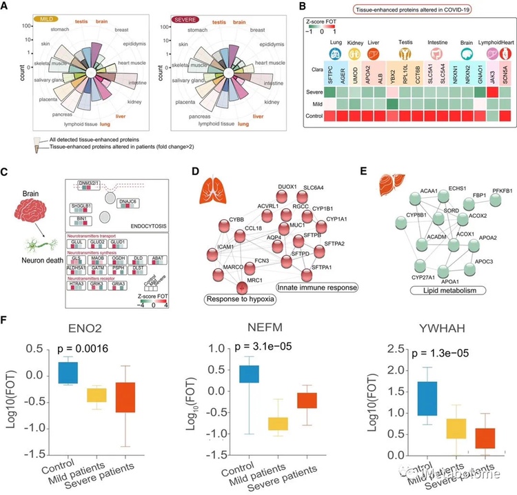 圖3. COVID-19患者組織特異性蛋白質(zhì)改變