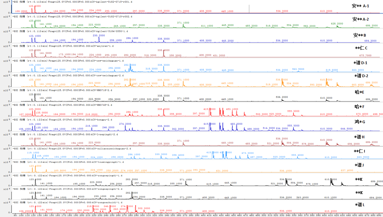 各品牌進樣瓶加入有機試劑或水渦旋后質譜檢測中均出現很多信號,這些信號會對我們的目標物檢測造成未知的影響,但市場上很難找到一款絕對“干凈”的進樣瓶。