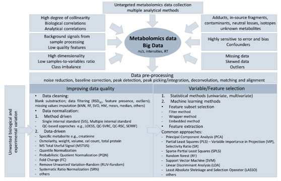 圖1.代謝組數據組成、數據質量提高策略和變量選擇步驟