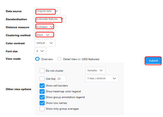 參數(shù)分別選擇原始數(shù)據(jù)、自動標(biāo)準(zhǔn)化特征、Euclidean距離測量方式、ward聚類方法(可根據(jù)自己實(shí)際情況調(diào)整)。點(diǎn)擊提交。