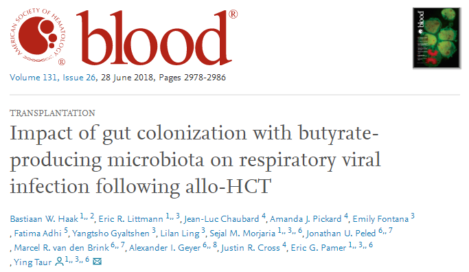 腸道微生物群有助于抵抗肺部的病毒和細菌病原體。腸道菌群組成和微生物代謝產物的相關變化是否會導致上呼吸道病毒感染后發生LRTI的風險,在異基因造血干細胞移植中仍未探索。
