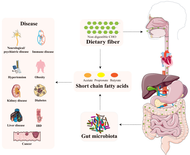 關于短鏈脂肪酸:是一組由六個或以下的碳原子組成的飽和易揮發脂肪酸。和長鏈脂肪酸不同,短鏈脂肪酸(Short-chain fatty acids, SCFAs)是由厭氧細菌或酵母菌進行糖酵解產生的。除了參與能量代謝和維持腸道穩態,SCFA還廣泛與宿主免疫疾病、糖尿病、肥胖等多種疾病相關,被認為是維持機體健康的關鍵物質。