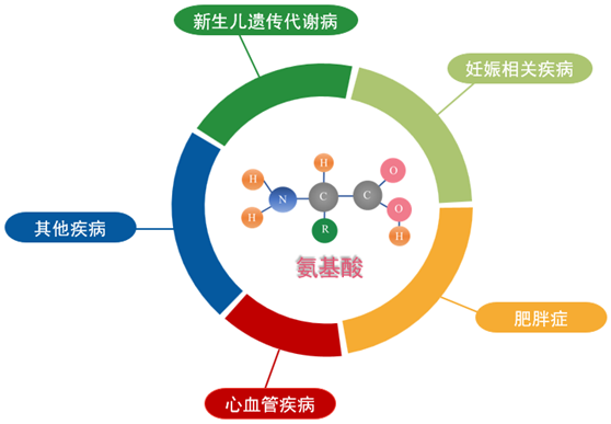 多種疾病受氨基酸的影響,氨基酸可作為生物標(biāo)志物以此來了解疾病狀況。蛋白質(zhì)氨基酸是某些代謝紊亂的潛在生物標(biāo)志物,如新生兒遺傳代謝病、糖尿病、心血管疾病、神經(jīng)性疾病等多個方面。