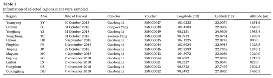 表1. 草果產地等信息