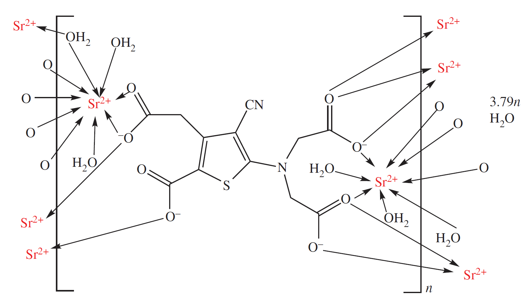 圖2. 雷奈酸鍶的高分子結構,每個單體單元含有兩個Sr2+離子