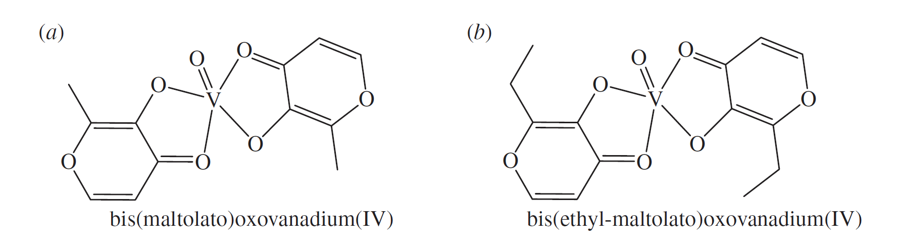 在脊椎動(dòng)物,特別是人類,VIV和VV有可能占主導(dǎo)地位,VV和釩酸鹽以及磷酸鹽之間的相似性可能是其發(fā)揮生物學(xué)效應(yīng)的主要原因。釩酸鹽依賴性的鹵素過(guò)氧化物酶類似參與磷酸鹽代謝的酶,釩酸鹽可以阻斷蛋白與磷酸鹽的結(jié)合。這種競(jìng)爭(zhēng)性結(jié)合可以解釋含釩化合物的胰島素模擬/胰島素增強(qiáng)潛力。釩復(fù)合物可用于緩解糖尿病中胰島素不足產(chǎn)生的不良反應(yīng)。它們不能完全彌補(bǔ)胰島素缺乏(如1型糖尿病),但是可以降低2型糖尿病對(duì)外源性胰島素或者其他口服降糖藥的依賴。雙麥芽二醇氧釩(BMOV)和乙基麥芽醇類似物,雙(乙基-麥芽聚糖)氧化釩(IV) (BEOV)的有效性和安全性已經(jīng)過(guò)廣泛的臨床前研究。BEOV已經(jīng)進(jìn)入二期臨床試驗(yàn)。這些釩基胰島素模擬藥的重大發(fā)展促使進(jìn)一步研究釩配合物的生物學(xué)應(yīng)用,特別是在藥物控制癌癥和由病毒、細(xì)菌、變形蟲和鞭毛原生動(dòng)物引發(fā)的寄生蟲疾病方面。