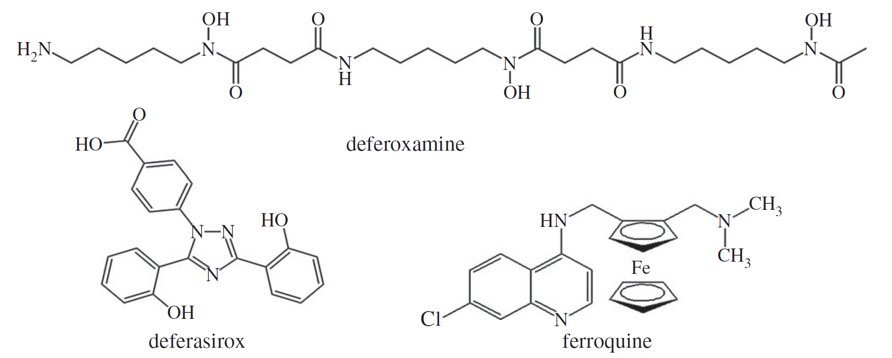 圖2. 注射用鐵螯合劑來(lái)去鐵胺,口服鐵螯合劑去鐵斯若和抗瘧藥亞鐵奎因