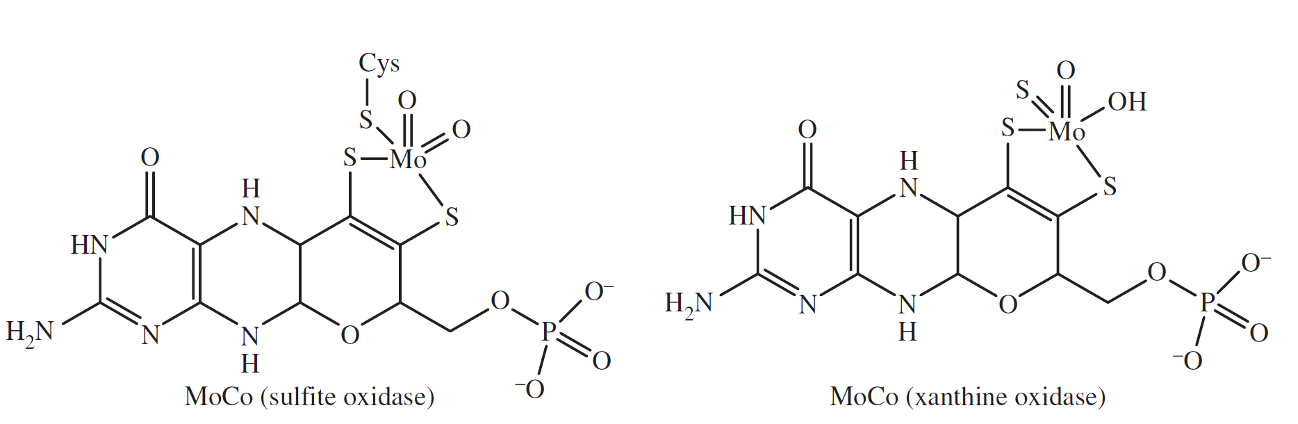 圖5. 黃嘌呤氧化酶和亞硫酸鹽氧化酶中輔助因子MoCo的結(jié)構(gòu)