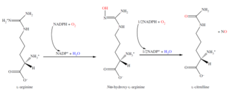 一氧化氮(NO)的無機(jī)化學(xué)近年來引起了人們的關(guān)注。這個(gè)反應(yīng)自由基是人體內(nèi)重要的信號分子,負(fù)責(zé)調(diào)節(jié)許多生物過程包括神經(jīng)傳遞,平滑肌收縮和免疫反應(yīng)。它是通過一氧化氮合酶利用NADPH和氧氣將精氨酸轉(zhuǎn)化為瓜氨酸而產(chǎn)生的。有三種NOS亞型:內(nèi)皮細(xì)胞(eNOS)、神經(jīng)元細(xì)胞(nNOS)和誘導(dǎo)細(xì)胞(iNOS)。神經(jīng)元NOS負(fù)責(zé)在神經(jīng)組織中產(chǎn)生NO,并參與細(xì)胞交流,eNOS在血管中產(chǎn)生NO并參與血管舒張,iNOS位于心血管和免疫系統(tǒng)在促炎細(xì)胞因子刺激下產(chǎn)生大量NO。