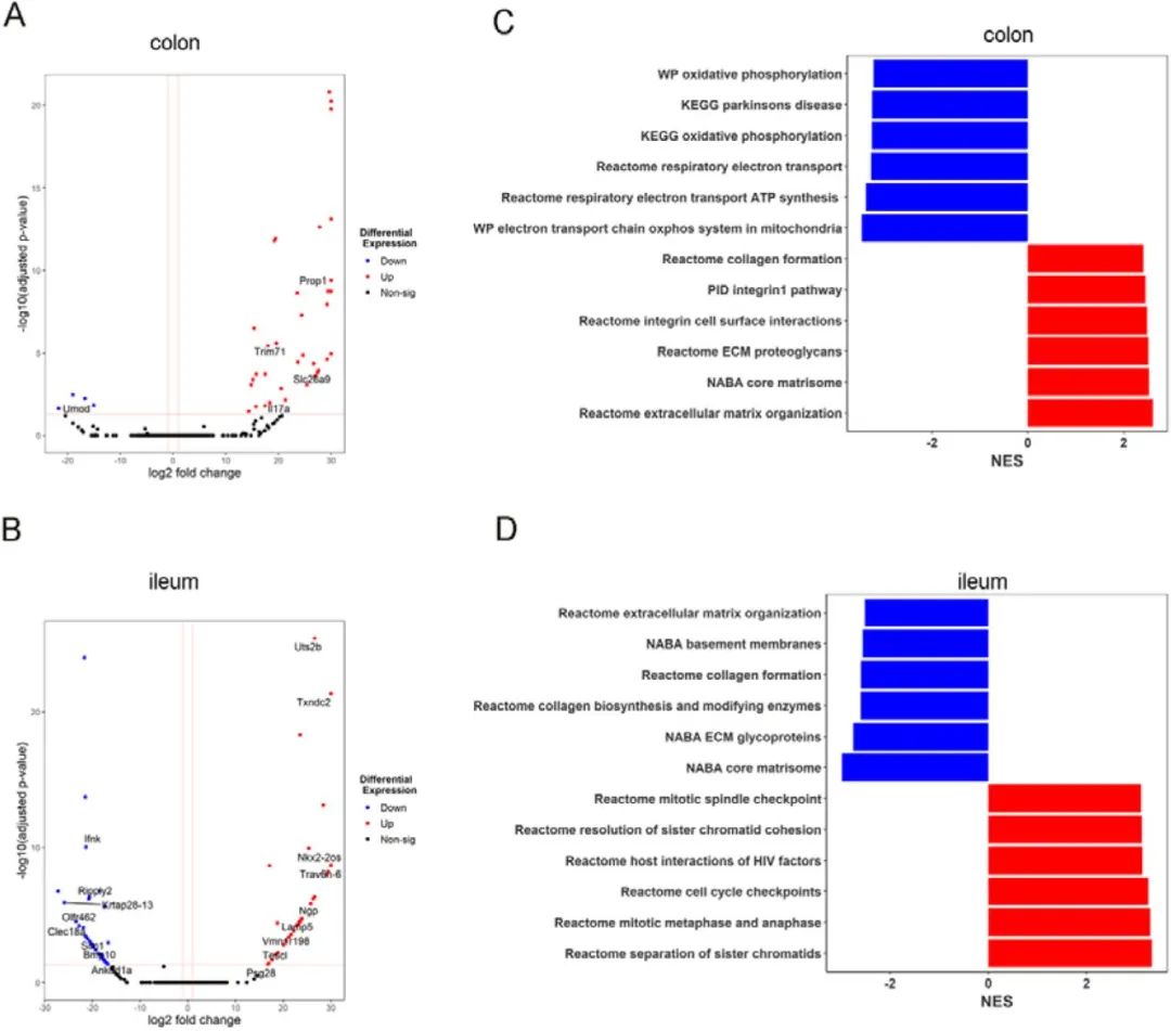 研究發(fā)現(xiàn),與未處理的小鼠相比,酪胺給藥的WT小鼠結(jié)腸中細(xì)胞分裂周期基因(Cdc34b)的表達(dá)顯著上調(diào),同時(shí),結(jié)腸和回腸中與上皮屏障功能相關(guān)的基因包括防御素和C型凝集素(Defb14 和Clec2)的表達(dá)水平升高(圖6A-B)。