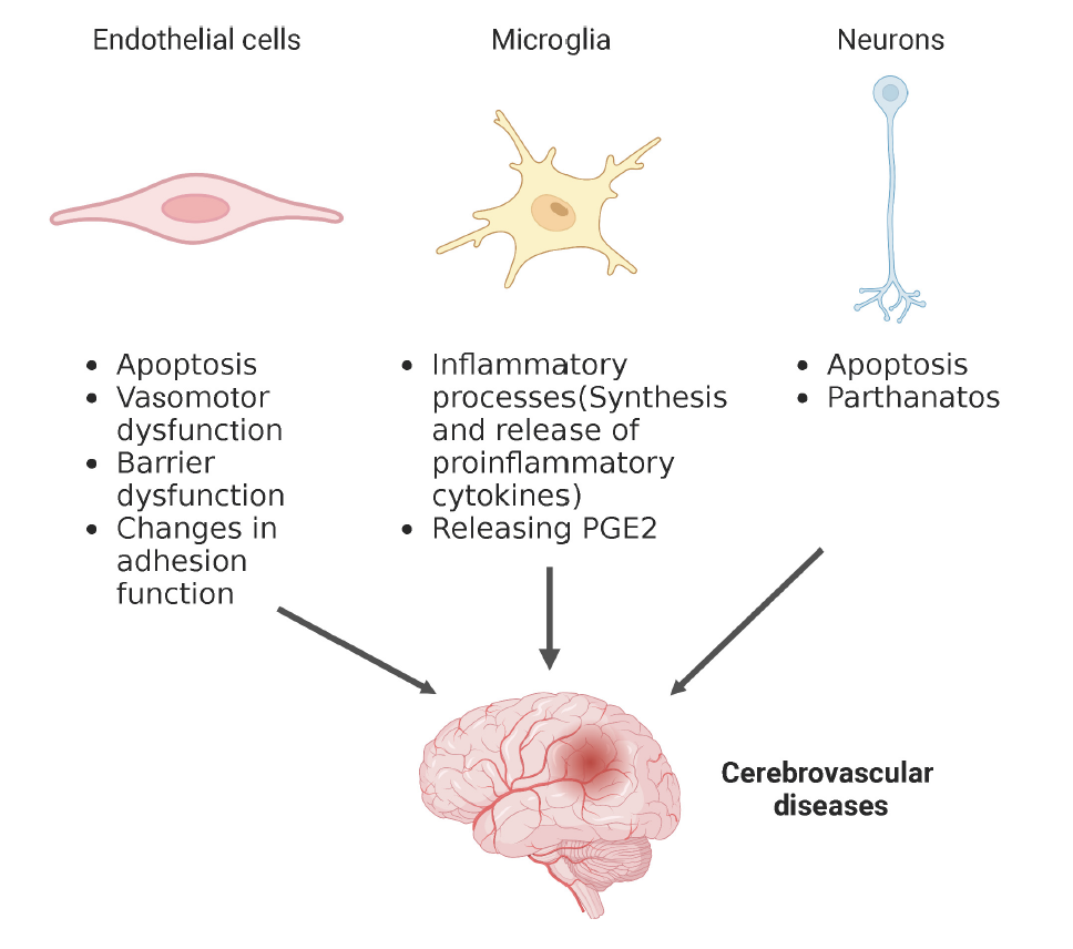 圖2. 神經酰胺調節不同細胞類型影響腦血管疾病的示意圖。
