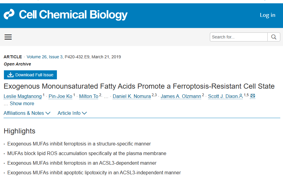 文獻分享丨Cell Chem Biol脂肪酸影響細胞生死存亡