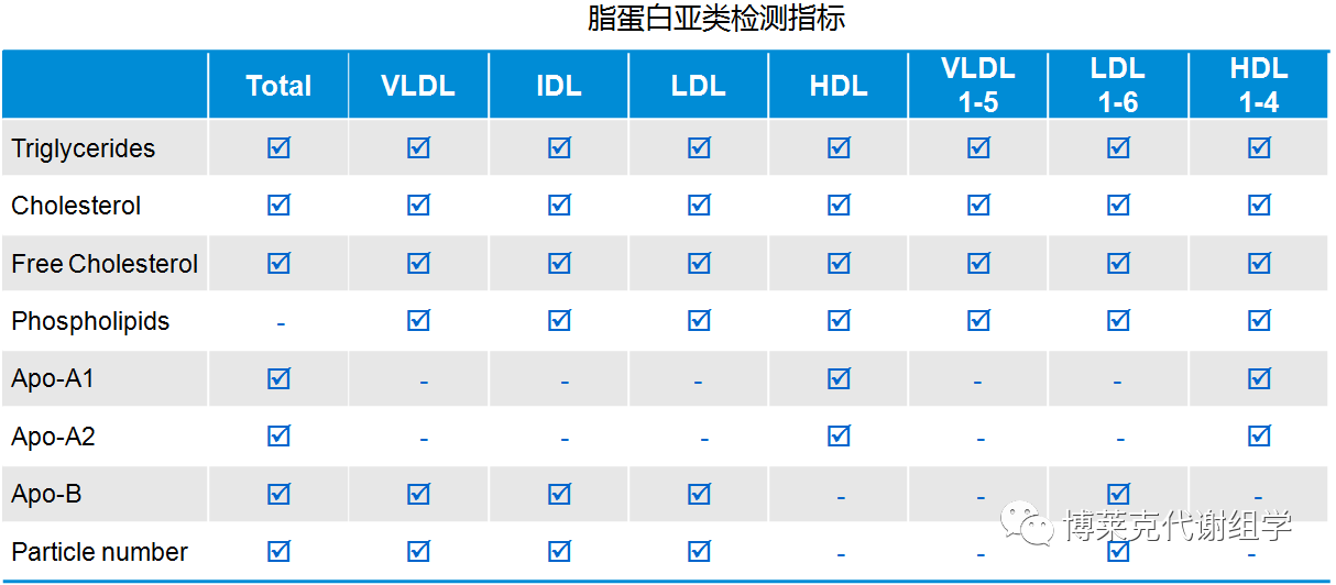 我公司可一針定量測(cè)定300+脂蛋白代謝指標(biāo),包括112個(gè)脂蛋白亞類(lèi)濃度指標(biāo)、幾十種內(nèi)源代謝物小分子濃度指標(biāo)和百余種功能指標(biāo),該方法擁有極佳的準(zhǔn)確性和可重復(fù)性。
