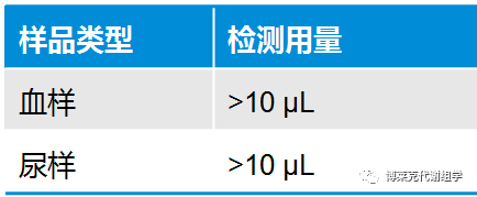 血樣僅需10 μL,尿樣僅需10 μL,一滴樣本即可滿足檢測要求。